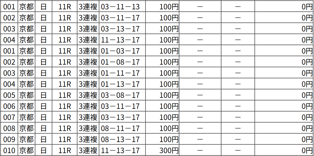 それと、カムニャックが3着に入った時のための3連複カムニャック軸流し。