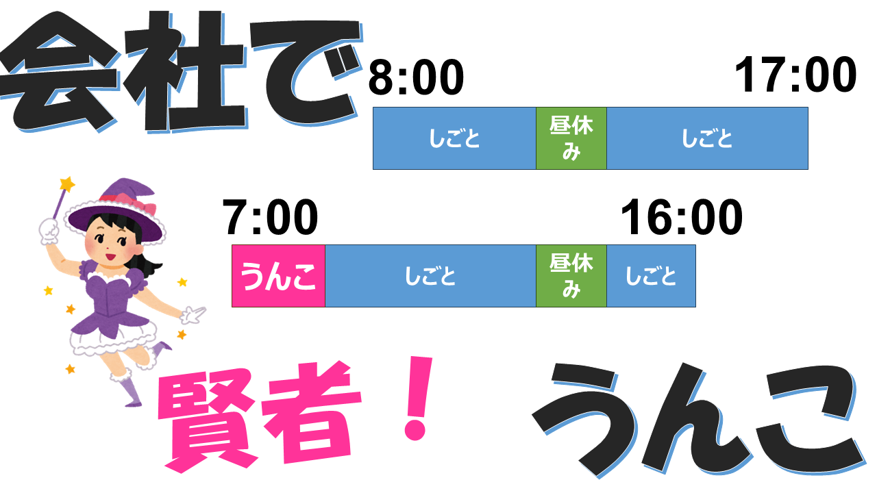 1時間早く会社に来て、即座にうんこタイム。これは賢者!