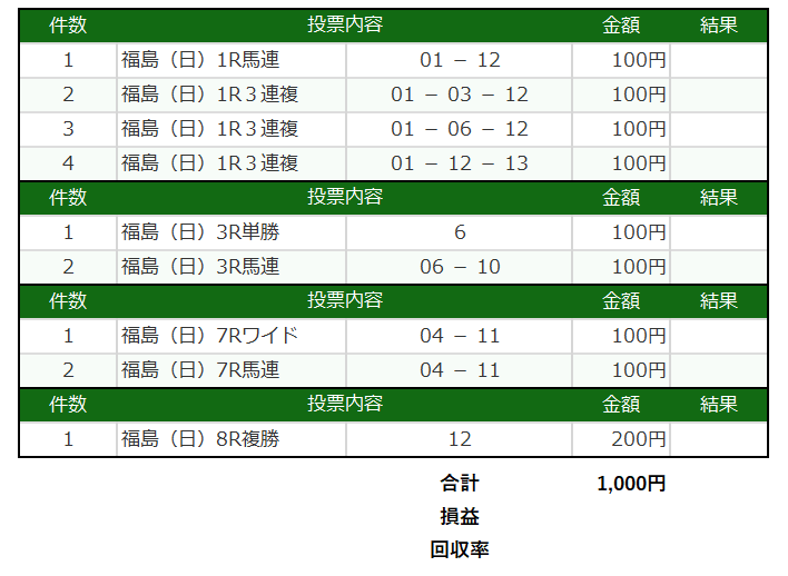 競馬連敗中なので、控えめに。